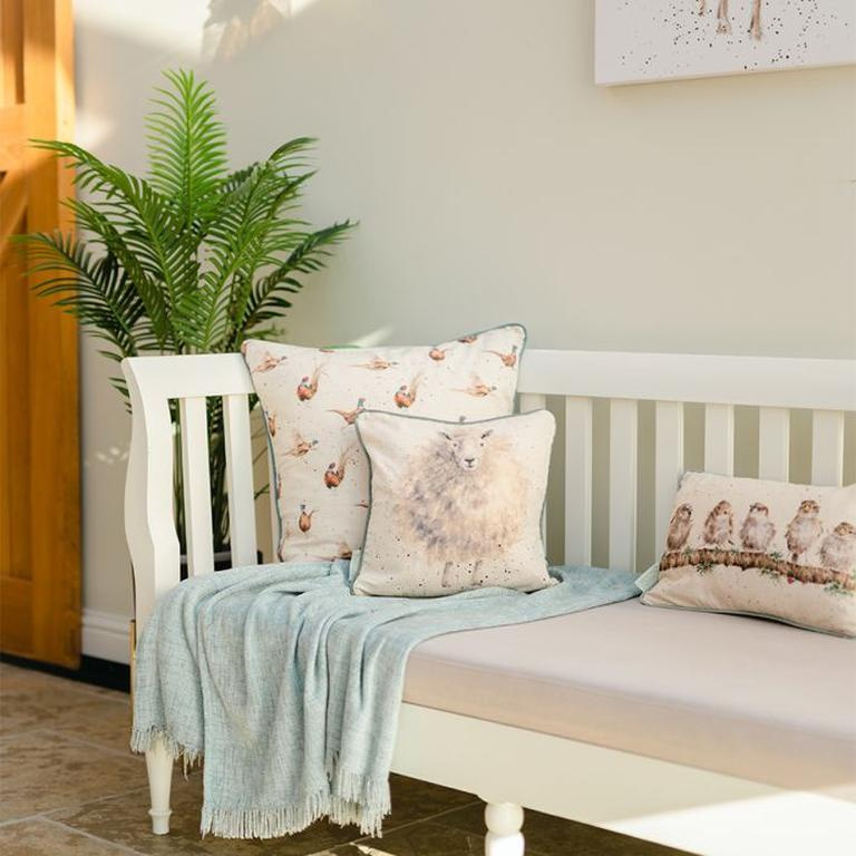 Breng een landelijke charme in huis met dit prachtige sierkussen van Wrendale Designs. De speelse illustratie van het wollige schaap 'The Woolly Jumper' geeft een warme en gezellige uitstraling aan elk interieur.