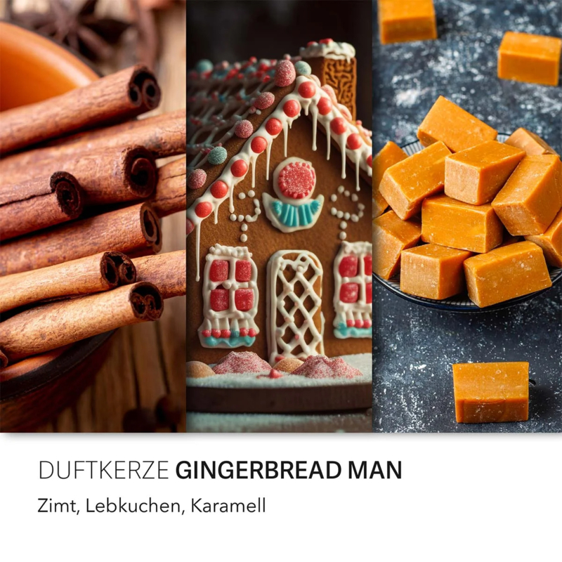 De Gingerbread Men geurkaars van Candle Brothers brengt de geur van versgebakken ontbijtkoek en kruidige kerstkoekjes rechtstreeks je huis binnen. Zodra je de kaars aansteekt, ontvouwt zich een rijke mix van appel, mandarijn en kaneel, gevolgd door een hart van anijs en zachte ontbijtkoek. In de basis blijven warme tonen van karamel, esdoorn, gember en vanille subtiel nazinderen — alsof er net iets lekkers uit de oven komt.