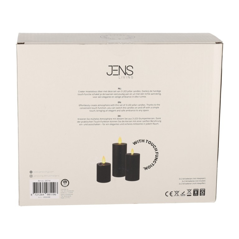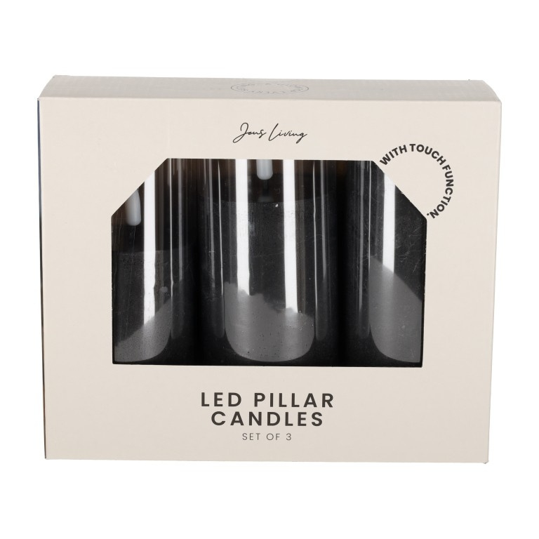 Met deze set van drie LED stompkaarsen in zwart creëer je eenvoudig een warme en rustige sfeer in huis. De zwarte kleur geeft een stoere en moderne uitstraling die mooi past bij elk interieur.