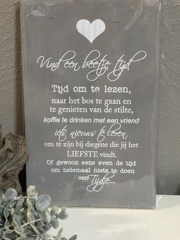 Tekstbord Steigerhout Vind een beetje tijd....