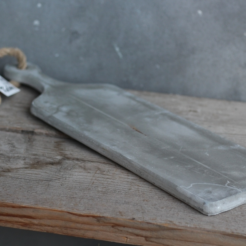 Stoer & Sober is deze cement look snijplank met een dik naturel touw.