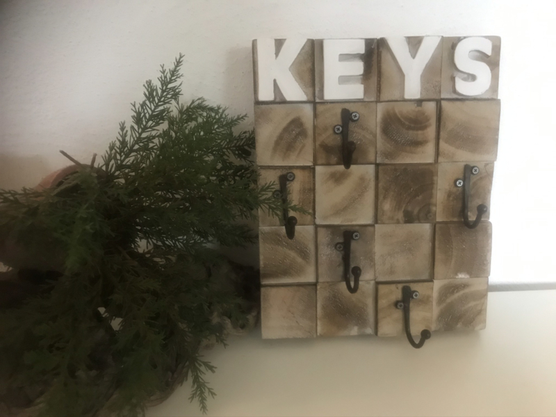 Artikelnummer: 7731 OverzichtSleutelplankje natural hout met 4 metalen haken