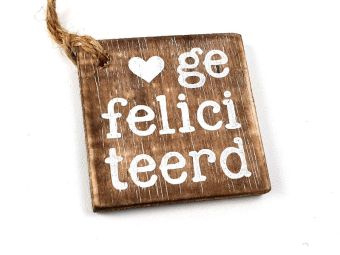 Hanger vierkant mini 6x6cm gefeliciteerd naturel