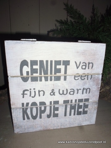 Theedoos 4 vaks met tekst 'Geniet van een fijn & warm kopje thee '