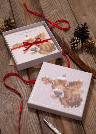 Wrendale Designs Kerstkaart Box Set van 8 Kaarten "First Taste of Snow" Cow