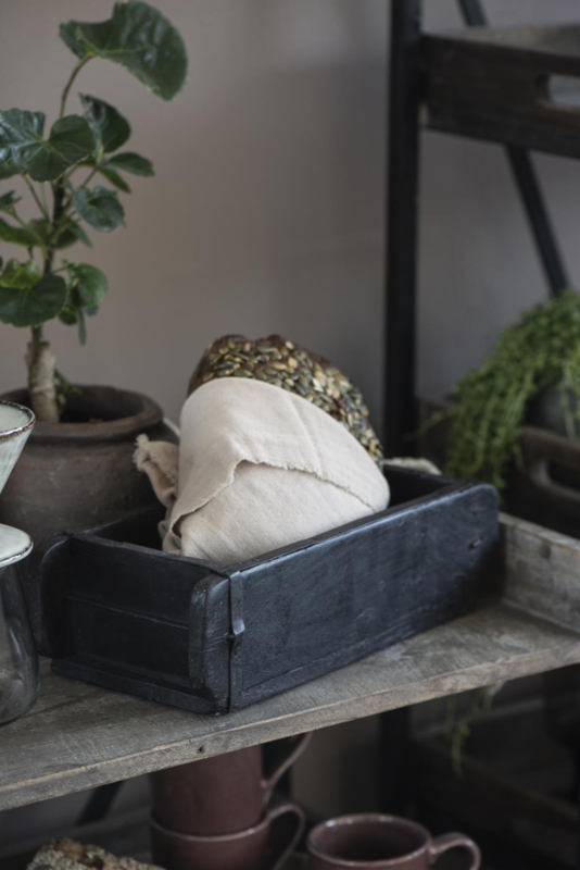 Gebruik de steenmal op allerlei manieren: als opbergdoos, gevuld met planten, kaarsen of andere decoratieve items. Dankzij de zwarte afwerking krijgt de rustieke uitstraling een extra stoere en industriële touch.
