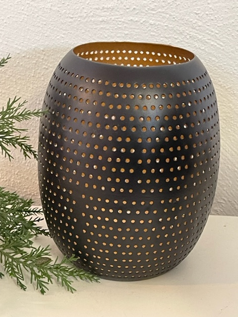 Gusta lantaarn zwart goud met gaatjes 15 cm sfeervol lichtspel