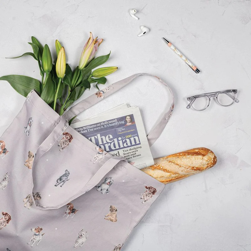 Deze opvouwbare boodschappentas van Wrendale Designs met het ontwerp ‘A Dog’s Life’ is ideaal voor boodschappen of dagelijks gebruik.