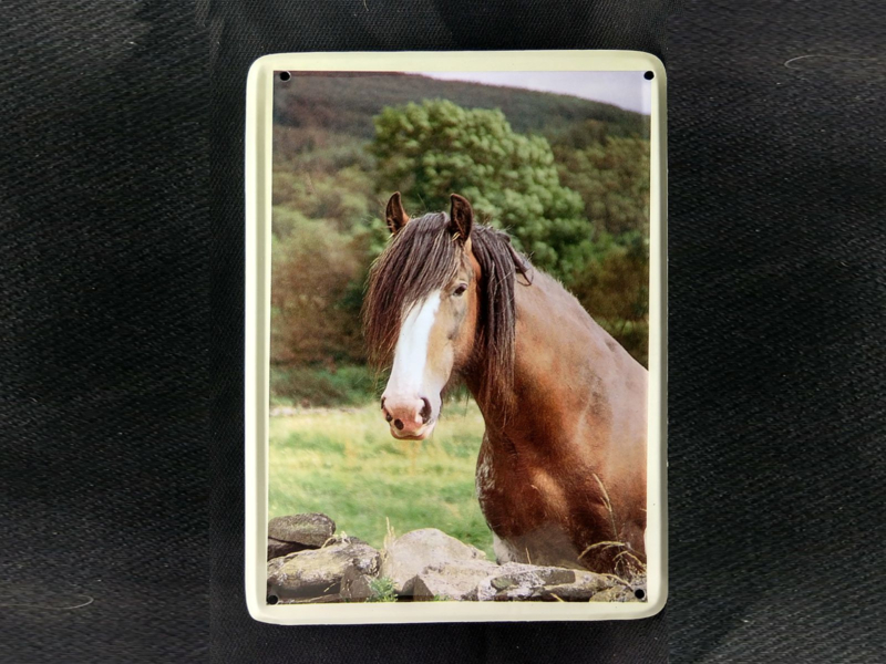 Paard achter stenen muur Vintage Muurbordje metaal