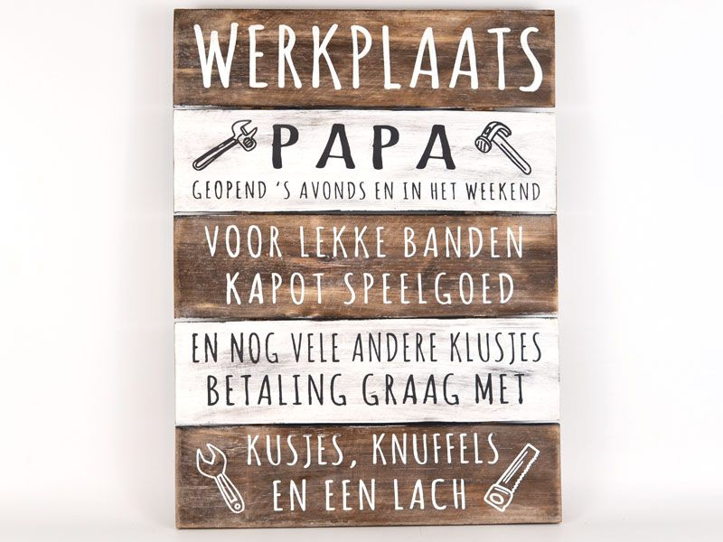 Artikelnummer: 7275 OverzichtTekstbord 40x30cm " Werkplaats Papa "