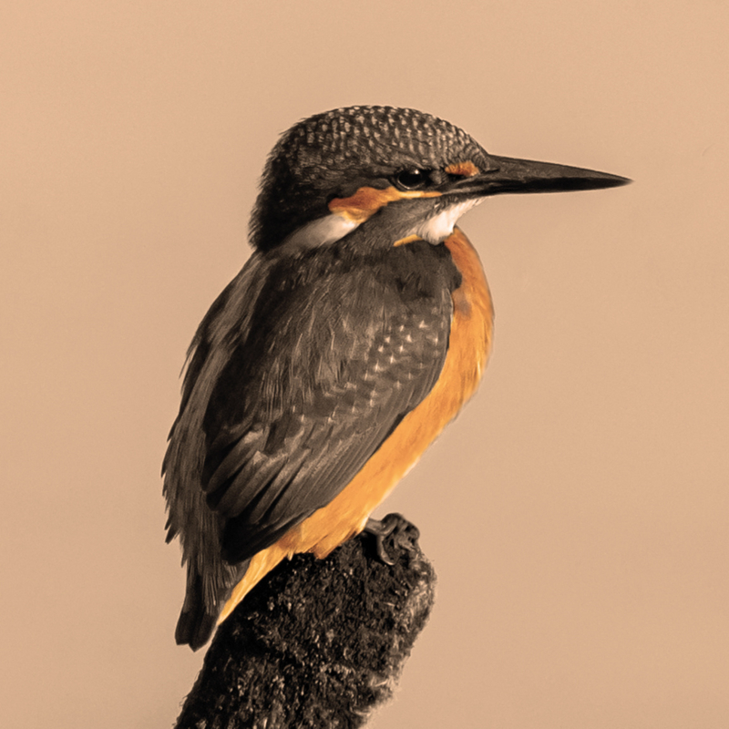 De ijsvogel die je op dit viltje ziet, is een vrouwtje herkenbaar aan het oranje onder de snavel.