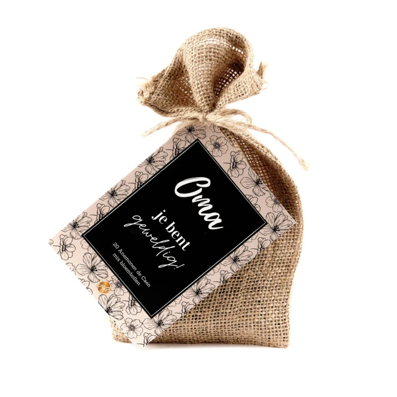 Verras je oma met dit originele bloembollen cadeaupakket. Dit prachtige zakje met tekst “Oma je bent geweldig” bevat 20 Anemonen de Caen mix bloembollen én een handige aardetablet.