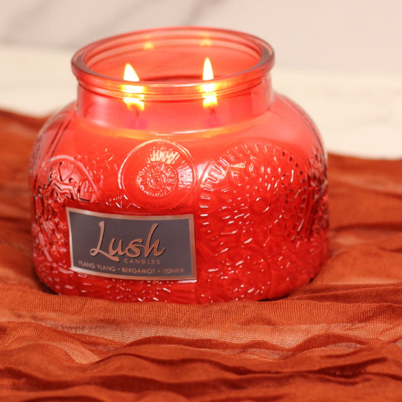 Cheerful Candle Large Geurkaars Ylang Ylang Bergamot Tonka 20 Oz Lush Rood