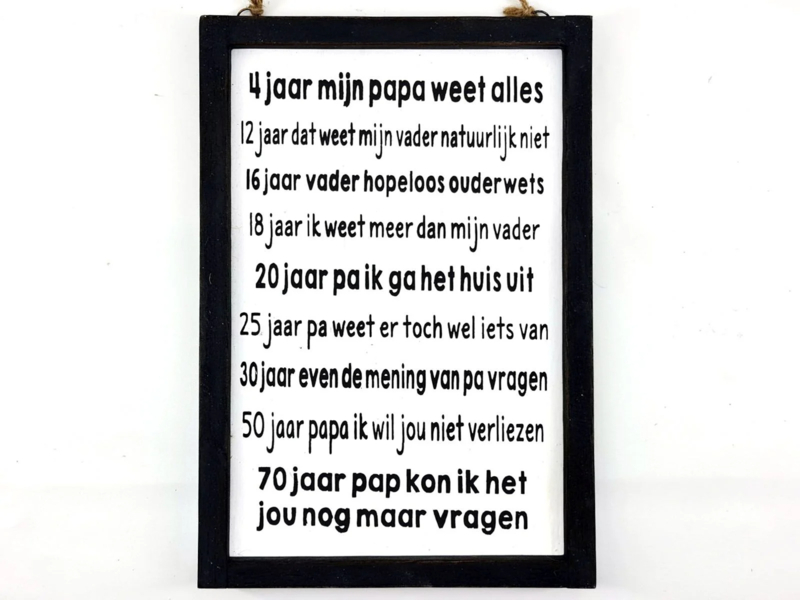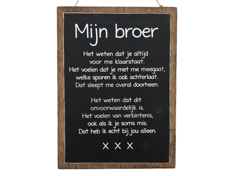 Onze tekstborden zijn ideaal als cadeau of om je eigen huis nét dat beetje extra sfeer te geven. Je hangt ze gemakkelijk op aan de muur, deur of zelfs aan een kast. Eén ding is zeker: een goed gekozen tekst zegt vaak meer dan duizend woorden.